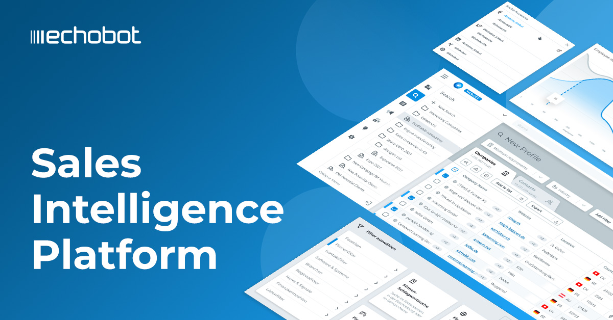 Echobot Firmendatenbank Die größte Datenbank zur B2B-Leadgenerierung Zielgenaue und intelligente Unternehmenssuche Das Herzstück von Echobot ist ein Verzeichnis aus über 40 Millionen Firmen aus Europa. Unsere Datenbank enthält alle Informationen, die im B2B-Bereich von Vorteil sind. Ihre [...]