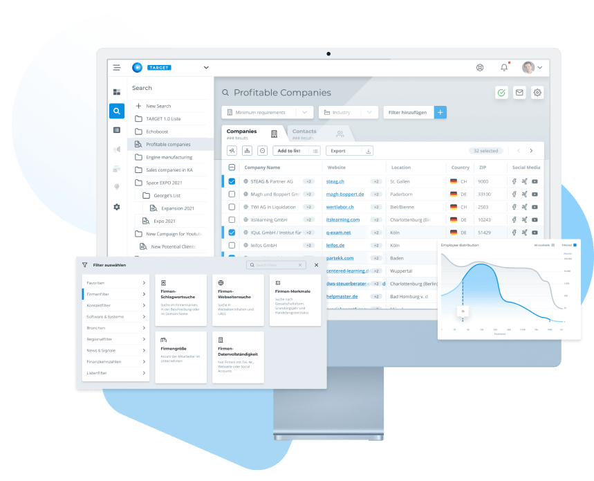 Finde Deinen nächsten Kunden jetzt noch einfacher: Mit TARGET 2.0 ist die mühsame Suche nach relevanten B2B-Daten endlich vorbei! Entdecke zahlreiche Verkaufschancen – in wenigen Sekunden.